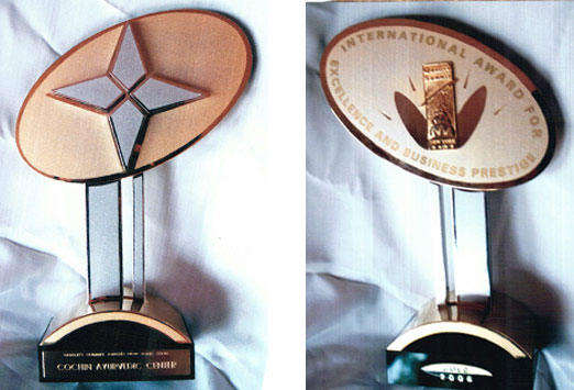 | Mr. Bastian Suresh with the golden trophy award, which he received from New York for his "Excellency in business promotion". |