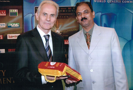 Mr. Bastian Suresh with the gold award in his hand, which is received from Paris 25 September 2006.?? |