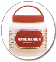 While dissolving Pankja Kasthuri in milk or any other liquid some times certain elements Similar to red stone powder will be found undisclosed . Patients may doubt that this is a stone Powder actually this is an ingredient of the medicine called Thalika Sindhooram. We have??Pankajakasthuri in tablet??form also packing size 60 tablets in one packet the difference between Pankajakasthuri and peekay tablets is no sugar candy is added in this tablets and a diabetic patient can easily consume this medicine. Also??Pankajakasthuri syrup 200 ml??. is available for the usage of children and the dosage is 10 ml.2 to 3 times daily.??