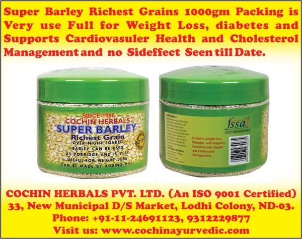 Super barley is produced from the richest grains and is very usefull for slimming weight loss. Overnight soaked barley can be used as porridge and is very usefull for weight loss can be maid by adding milk and no side effect is seen. Use this at the time of brakefast every day and you can get full benifit.since 1988.